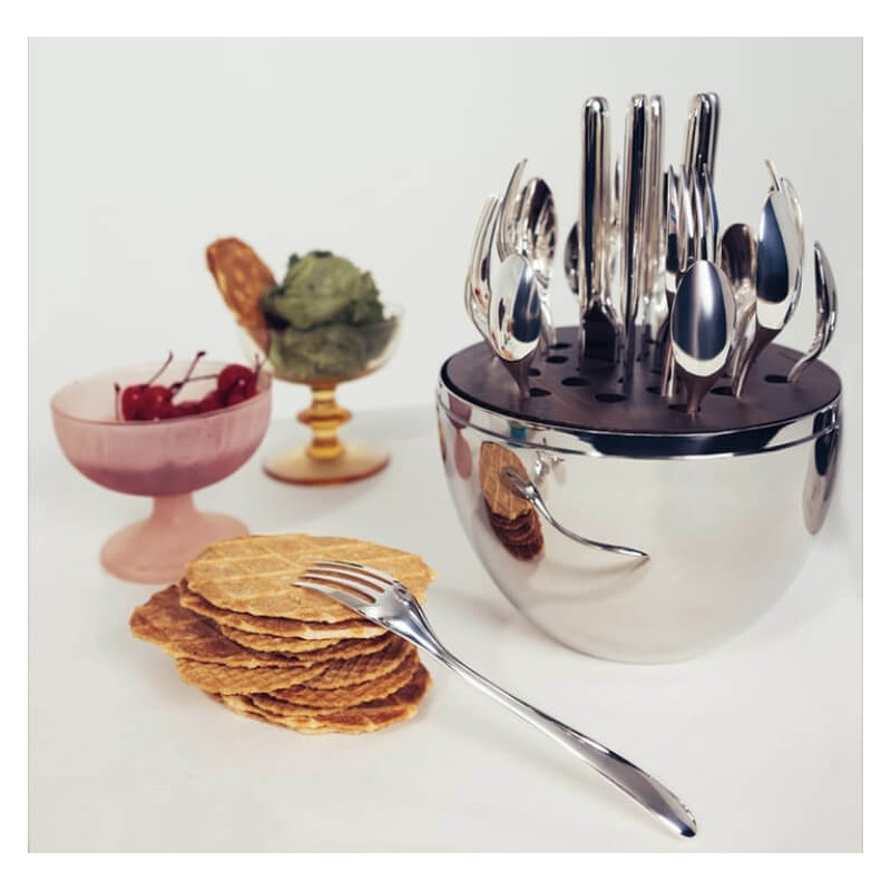 The MOOD Easy by Christofle offers an elegant silver-plated egg containing 24 flatware pieces designed for 6 guests. Compact at 27 cm, it is practical, lightweight and easy to carry, perfectly suited for relaxed dining moments, brunches or sweet and savoury breaks. More than a cutlery set, it is a decorative object that brings brilliance to the dining table, kitchen counter or living room. Inside, it holds 6 forks, 6 knives, 6 spoons and 6 coffee spoons, created for starters and desserts, combining functionality with Christofle’s timeless style.