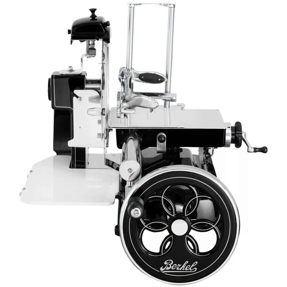 A domestic flywheel slicer with great cutting capacity and aesthetics inspired by vintage models, it guarantees perfect cuts in a vintage design with high-class finishes.