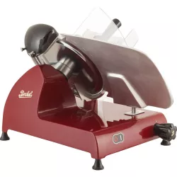 RED LINE, THE PROFESSIONAL ELECTRIC MEAT SLICER FOR HOME USE The electric slicer with all the Berkel quality and professionalism and now innovative design. Reduced dimensions, ease of use and state of the art solutions ensure a perfect cut every day. Modern, elegant design professional slicer • Prestigious design element that sets apart the most sought-after eateries • Soft lines, curves and ample spaces for clean, thorough cleaning • Special aluminium alloy structure • Chromed steel blade with professional profile • Highly professional cutting capacity and functionality • State-of-the-art safety devices • Professional meat table with automatic release system • Automatic blade cover removal system • Built-in millimetre slice thickness adjustment system • Built-in sharpener Height [B]: 480 mm Lenght [C]: 635 mm Width [A]: 475 mm Weight:: 27 kg Blade Diameter: 300 mm Cut Capacity Circle: 230 mm Cut Capacity Reptangular: 245 x 225 mm