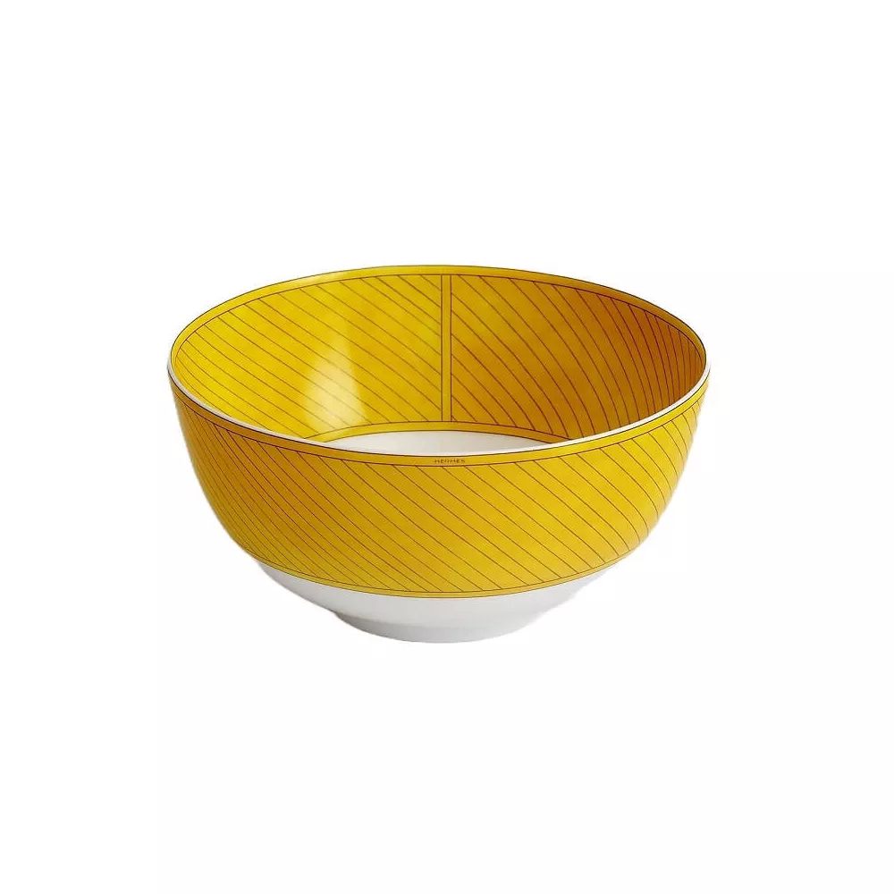 Soleil d'Hermès takes us on a journey to the vibrant summer heat, immersing us in the radiant Mediterranean sun. It captures the moment when the intense sunlight transforms buildings and objects, blurring their edges and infusing them with a soft luminosity. The design embraces natural lines, beautifully accentuating the hues of yellow with delicate gradients that add depth and power to the color palette. Through its intricate contours and delicate strokes, it highlights the fiery intensity of the sun. The collection showcases a playful and artistic approach, aiming to radiate light and express graceful and abstract forms, creating a mesmerizing interplay of rhythms and shapes. Soleil d'Hermès is a celebration of the sweetness of summer and conviviality, adorning the table with a luminous ambiance.