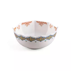 15.5 CM BOWL - HYBRID AROR 9153 When east and west combine. A collection that reflects ancient historic Western and Eastern ceramic production. Hybrid decorations that come from a complex past that evolve into contemporary shapes. Bone China Porcelain Diameter: 15,5 cm DISCOVER THE COLLECTION: Hybrid by Seletti