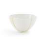 Kintsugi Japanese art assumes contemporary shapes. The delicate porcelaine is glorified and enriched with gold fragments for a tableweare collection made of charming and unexpected compositions. Bowl Design: Marcantonio Material: Porcelain, Gold Size: cm d 11,5 x h.6 Dishwasher safe Discover The Collection: Kintsugi by Seletti