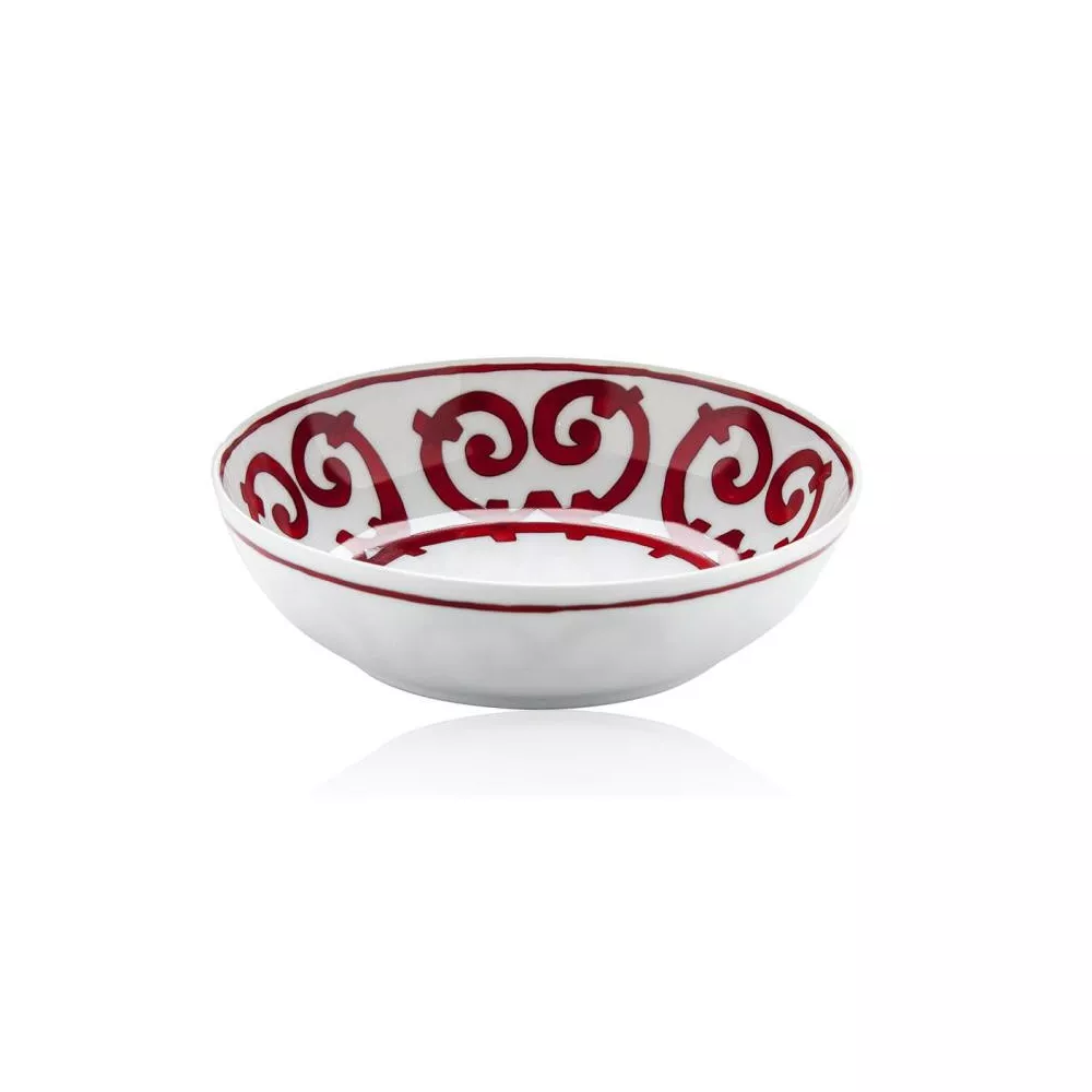 Hermes Balcon Du Guadalquivir Cereal bowl Along the banks of the Guadalquivir in southern Spain, Andalusian homes proudly display the lace-like patternsof their wrought-iron balconies. This porcelain collection highlights their exuberance in a fiery red hue. Dimensions: 17 cm Material: porcelain Code: 11013P For all Hermès products that are not available at the time of purchase, please consider a delivery time of 6 to over 12 months
