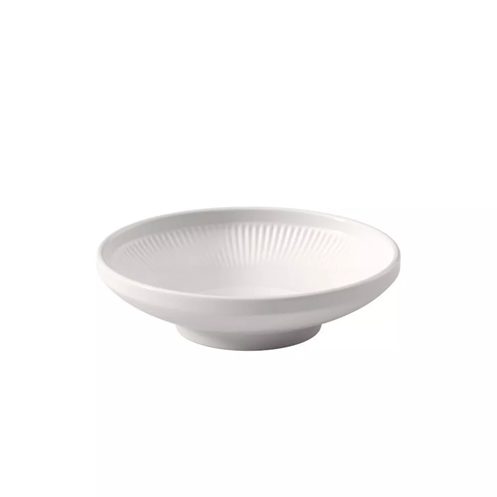 The small Afina bowl by Villeroy & Boch, perfect for serving desserts, combines elegance and practicality. Its modern coupe shape with a raised rim and sunray-inspired ring relief offers a unique tactile experience. Ideal for presenting desserts with style, this bowl adds a touch of minimalist refinement to your table. Made from Premium Porcelain, it is dishwasher and microwave safe.