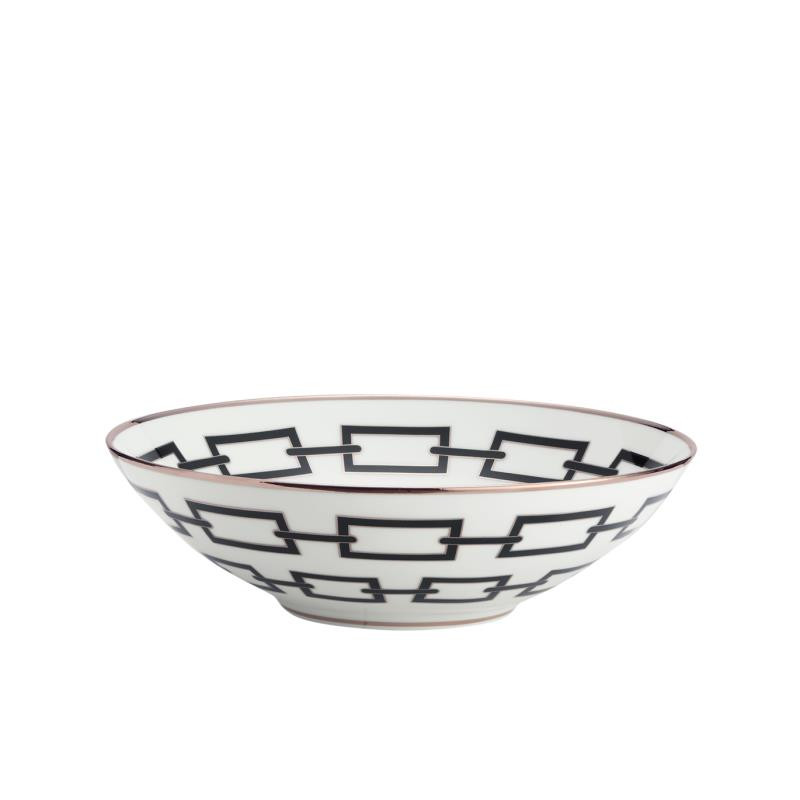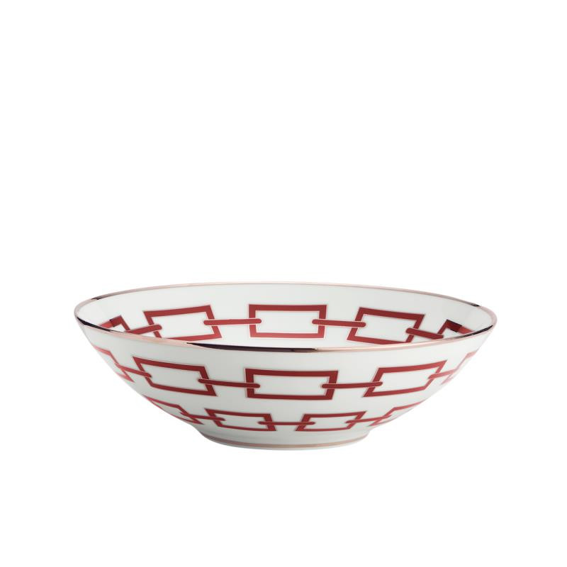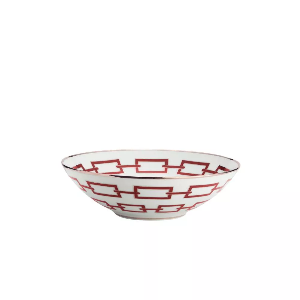 The Catene Impero Bowl by Richard Ginori celebrates timeless elegance and the creative genius of Gio Ponti. The signature interlocking chain motif of the Catene collection blends harmoniously with the Impero shape, balancing classical symmetry with modern sophistication. Each piece is enhanced with a delicate pure gold trim, adding a luminous touch of refinement. Available in elegant hues such as Black, Emerald, Sapphire, and Scarlet, this 20 cm bowl is perfect for serving desserts, fruits, or as a luxurious decorative accent. A masterpiece of Italian artistry, design, and tradition.