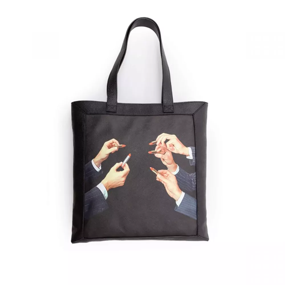 TOTEBAG, "LIPSTICK", TOILETPAPER, 2210 - SELETTI Irreverent images that will certainly won't go unnoticed; TOILETPAPER world is ready to go with you everywhere with the new Travel kit. Exotic islands or relaxing romantic getaways, the only thing you need to do is book your next trip! Tote Bag Design: Toiletpaper Material: PVC, Polyester Size: cm 42 × 7,5 h. 69