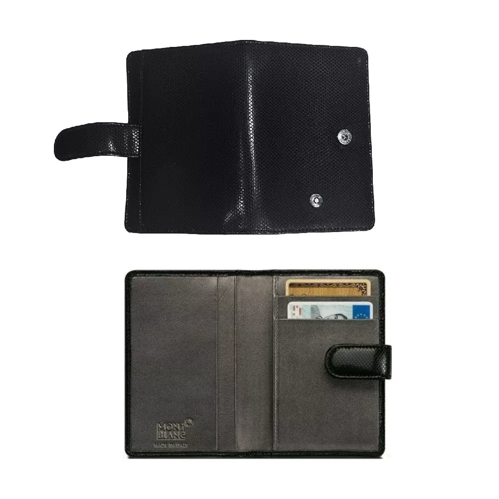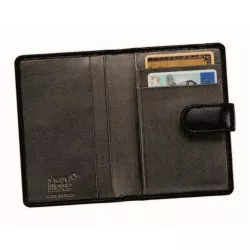 The Montblanc Boheme business card and credit card holder, model code 106780, combines elegance and functionality in a compact design. Made from black and pearl leather, it offers 2 credit card slots, 3 internal pockets, and 1 external pocket. Its compact dimensions of 9.5 x 10.5 cm make it perfect to carry anywhere. Includes the original case and a 2-year manufacturer's warranty.
