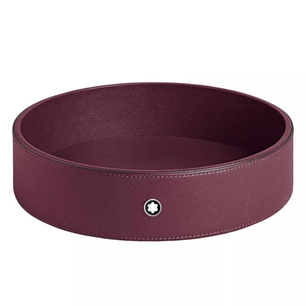 A stylish and functional accessory to organize any desk space. Crafted in luxurious cassis burgundy leather, this Montblanc round tray is ideal for storing office supplies or personal items. Refined design and Italian craftsmanship come together in this elegant piece.