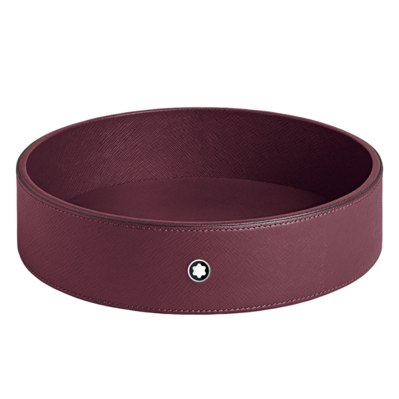 A stylish and functional accessory to organize any desk space. Crafted in luxurious cassis burgundy leather, this Montblanc round tray is ideal for storing office supplies or personal items. Refined design and Italian craftsmanship come together in this elegant piece.