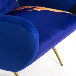 The traditional design of these 1950's style seats are upholstered with unexpected surreal images. The images of the TOILETPAPER magazine invade furniture and become comfortable objects to relax in – not only for art lovers' homes. Armchair Design: Toiletpaper Magazine Material: Fabric in polyester, Structure in wood, polyurethane and metal Size: cm 70 x 79 h. 86