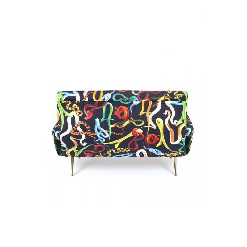 Two seater sofa Snakes Design: TOILETPAPER Materials: polyester, wooden frame with polyurethane padding, metal Dimensions: 122 x 86 h. 42/86 cm Code: 16092