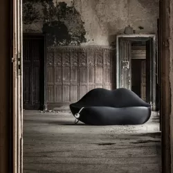 The Dark Lady Sofa is a bold reinterpretation of the iconic Bocca sofa designed by Studio65 in 1971 as a tribute to Salvador Dalí’s surrealist vision. Cloaked in a mysterious deep black hue and adorned with a metal side piercing, this design masterpiece fuses sensuality, rebellion, and irony. Made from cold-expanded polyurethane foam with differentiated density and covered in washable stretch fabric, Dark Lady retains the voluptuous lip-shaped silhouette that has made Bocca a symbol of Italian Radical Design. Produced in a limited edition of 500 pieces, it embodies avant-garde elegance and artistic provocation.