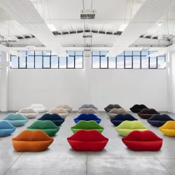 The Bocca Blue Unlimited Sofa reimagines Studio65’s legendary design in a fresh, contemporary hue. To mark its anniversary, the iconic piece of Italian Radical Design has been launched in 25 new colors, including this elegant deep blue. Inspired by Salvador Dalí’s 1935 portrait of Mae West—where the actress’s lips become a sofa—Bocca has become a Pop Art masterpiece and an enduring symbol of sensuality and style. Crafted from soft expanded polyurethane foam and covered in washable stretch fabric, this cult object perfectly balances comfort and artistic flair, remaining one of the world’s most celebrated design icons.