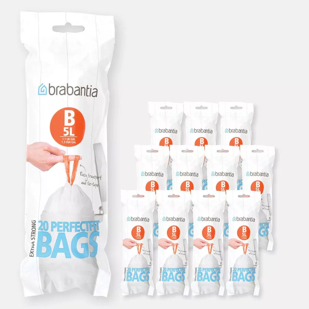 Pack of 20 5 liter Slimline bags, code B White color with closing strap in roll pack SKU 311741