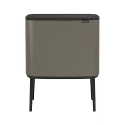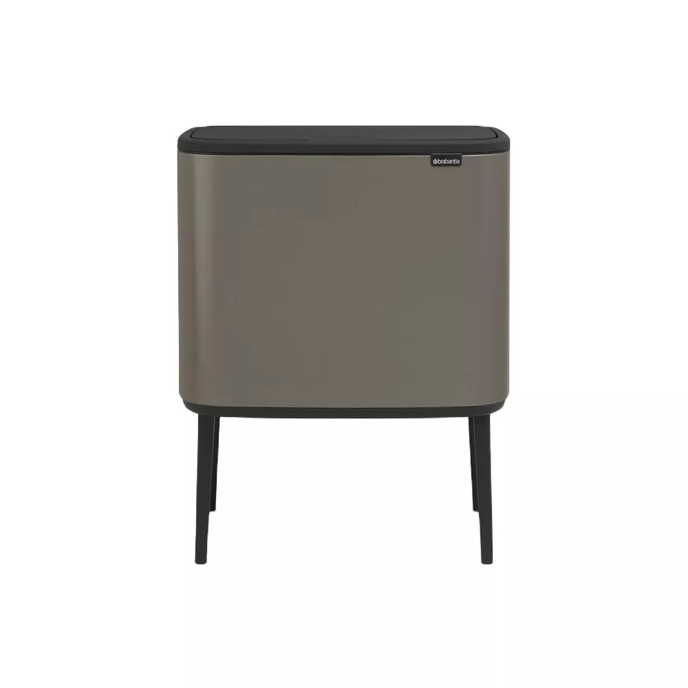 BO TOUCH BIN, 11+23 LT - BRABANTIA Looking for a beautiful solution for waste separation? This Bo Touch Bin combines a beautiful design with all features for easy waste separation at home. It comes with two removable inner buckets for 2 kinds of waste. It fits perfectly against a wall (space-efficient), and is very stable, thanks to the adjustable non-skid legs. Its unique soft-touch closure makes for easy and light operation at the touch of your hand. Dimensions: Capacity 34 litres Height 68.0 cm Width 54.0 cm Depth 31.2 cm