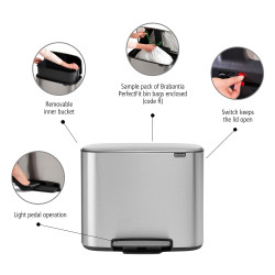 A stylish waste solution that perfectly fits your home. The Bo Pedal Bin 36L by Brabantia combines functionality with aesthetics, featuring a space-saving design and a hygienic pedal mechanism for hands-free use.