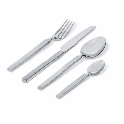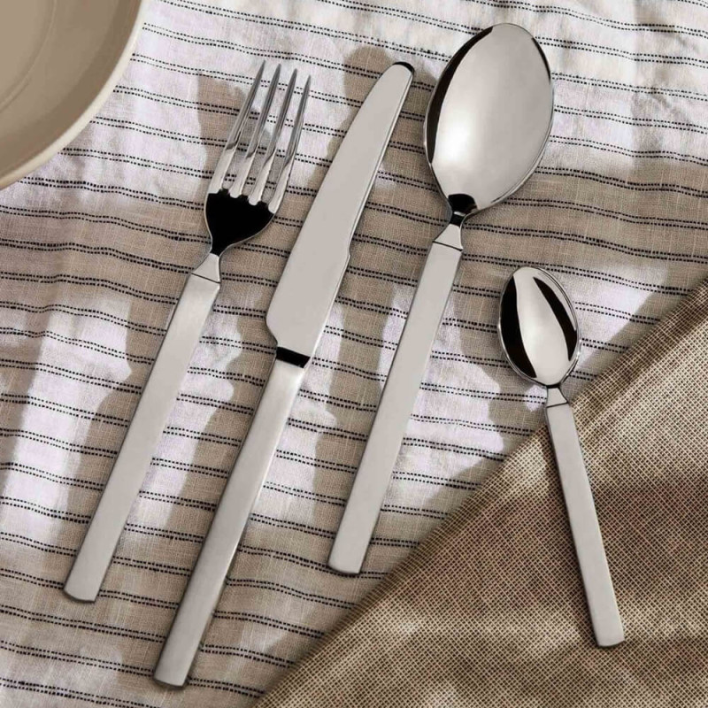 Designed by Achille Castiglioni, the Dry cutlery set is a perfect fusion of functionality and refinement. Its iconic design blends practicality and aesthetics, featuring a polished 18/10 stainless steel finish with satin-finished handles, adding a touch of elegance to the table. A set created for those who appreciate uncompromising design.