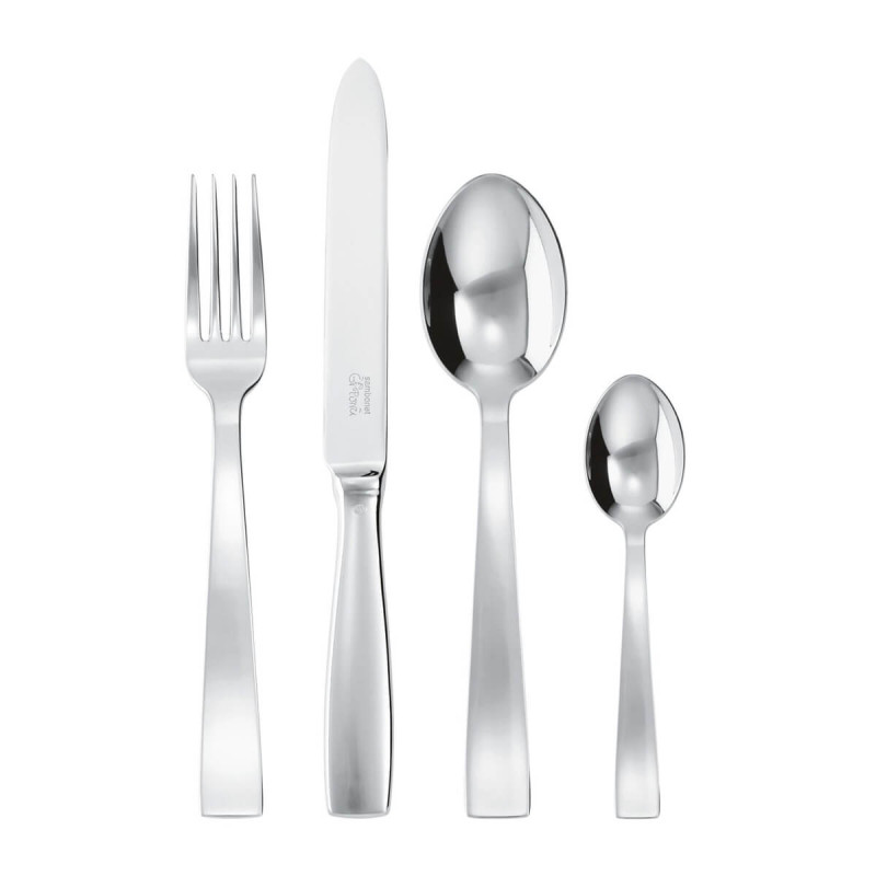 • 75-piece set: 12 table spoons, 12 table forks, 12 table knives, 12 fruit forks, 12 fruit knives, 12 tea spoons, 1 ladle, 1 serving spoon, 1 serving fork.