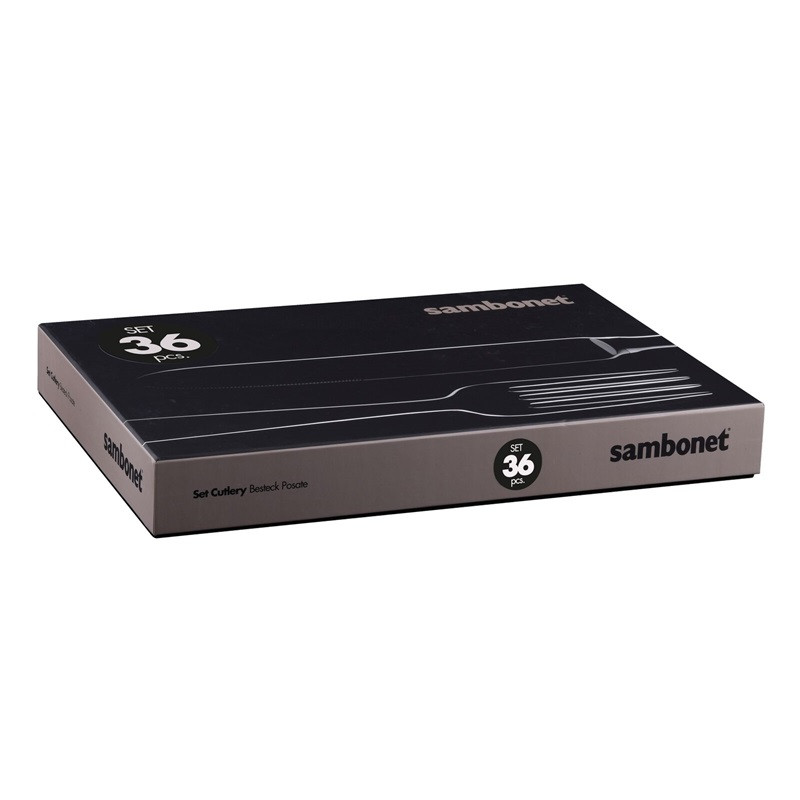 • 36 pieces: 6 table spoons, 6 table forks, 6 table knives, 6 fruit forks, 6 fruit knives, 6 tea spoons