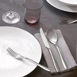 The Sintesi model perfectly blends style and refinement. This collection highlights the beauty of functional lightness, bringing ergonomics, practicality, and versatility to the dining experience. A timeless flatware set, guaranteed by Sambonet’s expertise and craftsmanship.