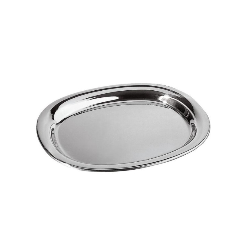 OVAL TRAY, STAINLESS STEEL JM13 - ALESSI Polished 18/10 stainless steel serving platter. There's nothing better for serving food at the table than a beautiful stainless steel serving platter—indestructible, hygienic, and easy to clean. For these reasons, stainless steel serving platters have become popular in the professional restaurant market since the post-World War II era. Code: JM13 L Designer: Jasper Morrison