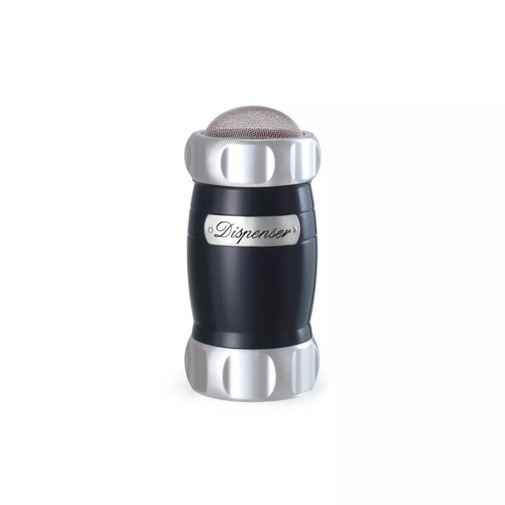 Black Dispenser DI-NER MARCATO The Black Dispenser DI-NER by Marcato is a practical and elegant accessory designed for even distribution of flour, semolina, or powdered sugar during pasta making or baking. This dispenser is ideal for dusting work surfaces or lightly coating dough, helping to prevent sticking and ensuring a smooth preparation process. Made from high-quality, food-safe materials, the dispenser is both durable and user-friendly. Its sleek black color adds a touch of sophistication to your kitchen, making it a stylish as well as a functional tool. The dispenser features an easy-to-use mechanism that allows you to control the amount of flour or sugar dispensed with precision, ensuring consistent results every time. **Important:** 1. Do not wash in the dishwasher. 2. Clean with a dry cloth or a brush to remove any residue. **Dimensions:** Compact and convenient for storage. **Color:** Black (Nero)