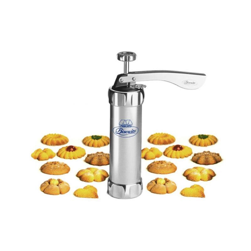 Biscuits, from the Marcato Design line, is a delightful and practical machine designed for making homemade cookies. It comes with 20 interchangeable discs, each allowing you to create a different cookie shape, making it perfect for every occasion throughout the year. With this machine, you can easily create cookies that can be decorated or filled according to your personal taste.
