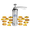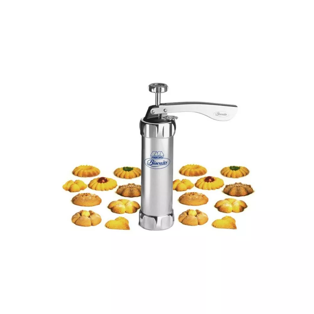 Biscuits is very easy to use and doesn't require parchment paper or butter on the baking tray. With a single load of the cylinder and a simple press, you can make 20-25 large cookies or 35-40 small cookies.