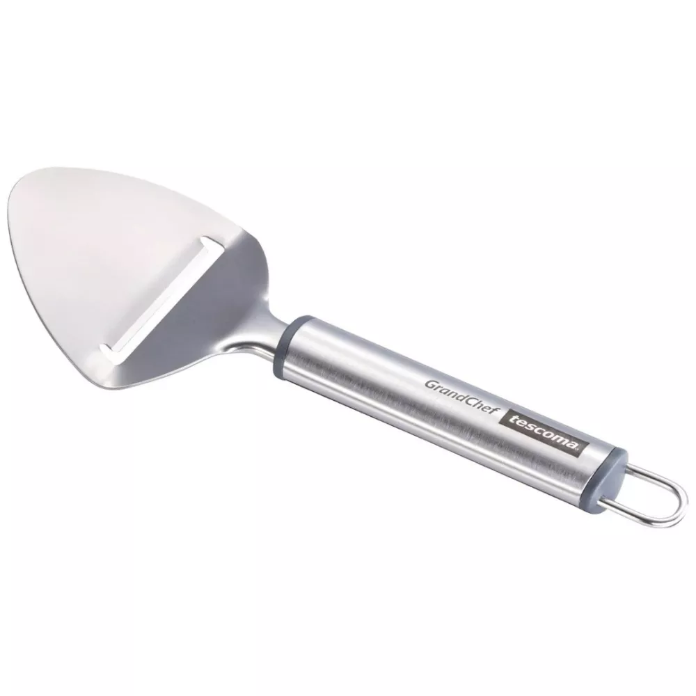 The GrandCHEF cheese shaver 428242 by Tescoma is an elegant and practical tool designed to create thin and uniform cheese shavings with ease. Made from high quality stainless steel, it features refined details and a carefully crafted design. The angled cutting edge guides the cheese through the slot, allowing perfectly shaped shavings to be produced with a simple movement. Equipped with a practical hanging hook, it is ideal for keeping this essential utensil within easy reach when serving Parmesan, Grana or other aged cheeses.