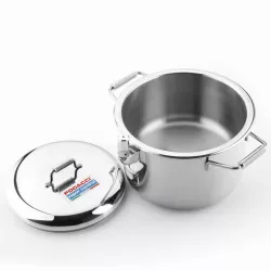 Pot with lid, 18 cm diameter, 13.5 cm height, 2.7 liters capacity.