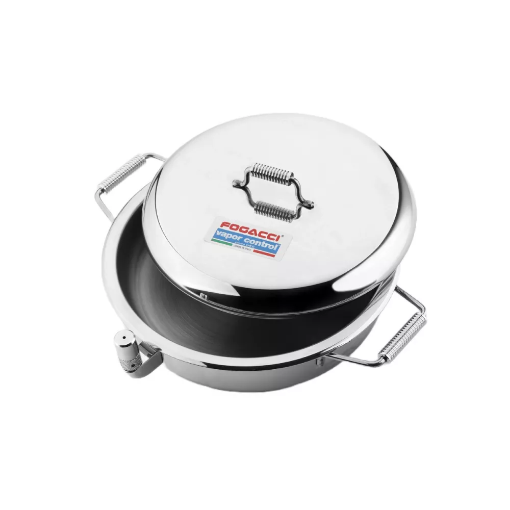 The patented system of FOGACCI® vapor control® involves the use of a double wall made of 18/10 stainless steel that creates a space where steam is formed. Thanks to a special valve, the amount of steam and the temperature inside the pot are regulated to cook food gently and evenly, without the risk of burning. This cooking method allows food to be cooked without direct contact with the heat source, maintaining a constant temperature that never exceeds 105°C. In this way, food is protected from heat alterations and flavors, nutritional principles, and nutritional values remain unchanged. FOGACCI® vapor control® is the ideal choice for a healthy and tasty kitchen, where food quality always comes first.