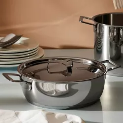 2 HANDLES LOW CASSEROLE, POTS&PANS AJM102 - ALESSI Realizzata in acciaio inossidabile 18/10, la casseruola bassa a due manici della serie Pots&Pans si distingue per il design minimale e l'alta funzionalità che caratterizzano tutti i pezzi di questa riuscita collezione di pentole disegnata da Jasper Morrison. Adatta per la cottura su ogni fonte di calore. Low casserole with 2 handles in 18/10 stainless steel Suitable for induction stoves