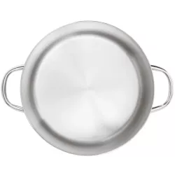 The high casserole with two handles from the Paderno Serie 1100 Grand Gourmet is designed to deliver professional performance and long lasting reliability. Crafted in stainless steel with internal and external satin finish and a polished rim, it combines structural strength with functional elegance. The sandwich thermo diffusing base in stainless steel aluminum stainless steel ensures even heat distribution and efficient energy use. Ergonomic tubular handles resistant to heat and a reinforced rim complete a structure conceived for intensive use, suitable for all cooking methods in professional and high end domestic kitchens.