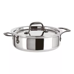 The Sambonet Home Chef 51109 low casserole is designed for chefs and gourmet lovers alike. Made in Italy with advanced 5-ply technology, it features layers of high-conductivity aluminum and durable stainless steel for uniform heat, fast boiling, and perfect crispness. Complete with heat-resistant PVD 2Black handles and lid, it's ideal for all heat sources, including induction.