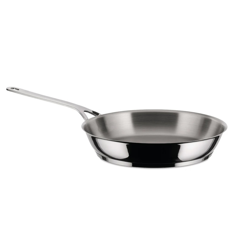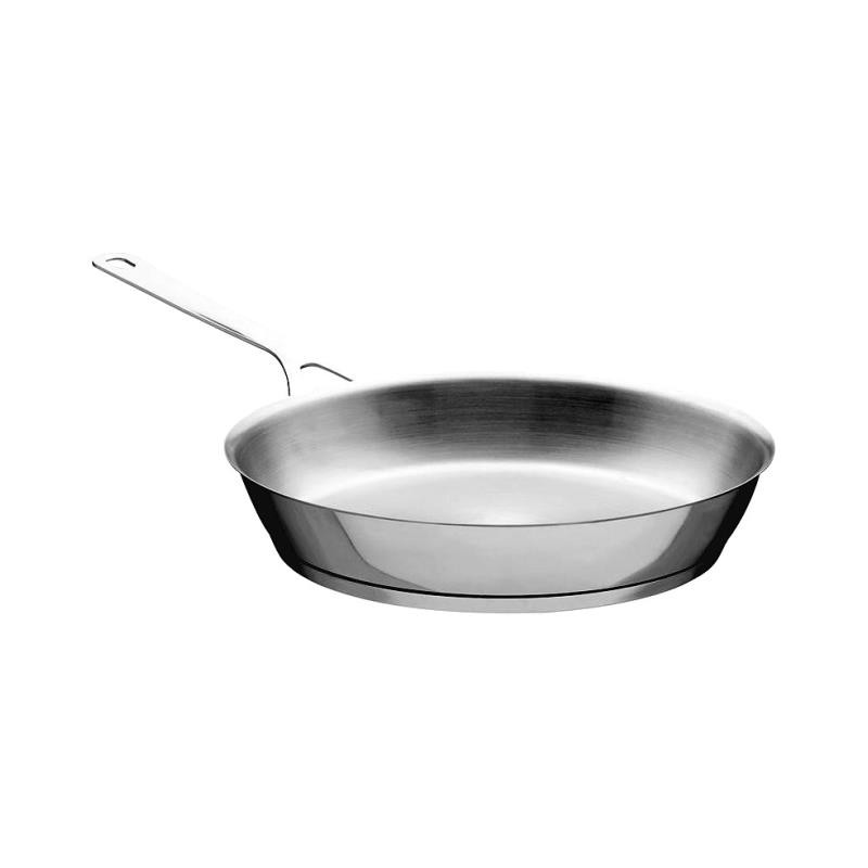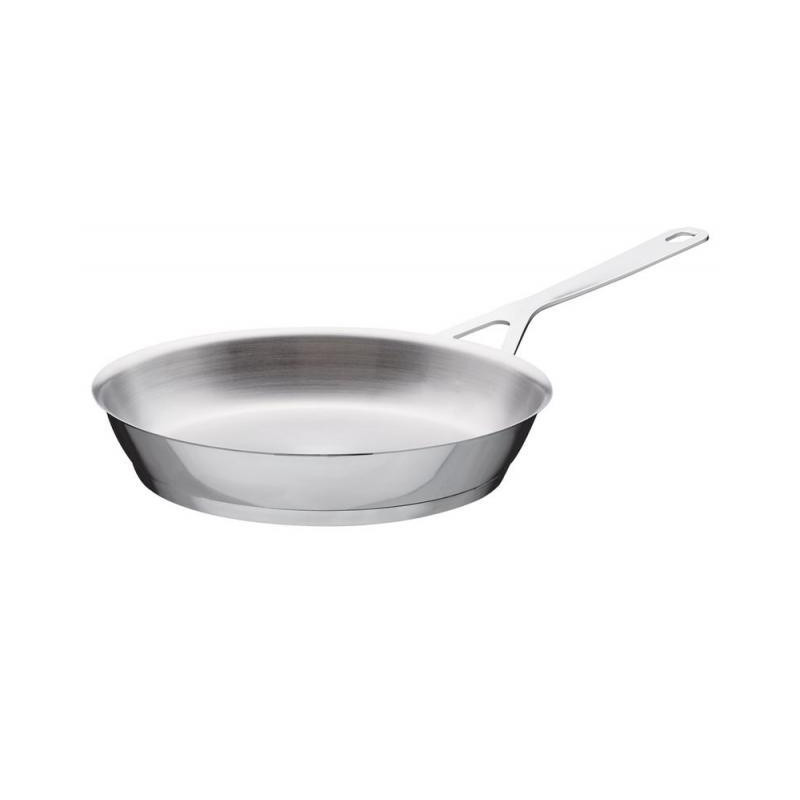 STAINLESS STEEL PAN, POTS&PANS AJM110 - ALESSI The long-handled frying pan is an essential piece in the kitchen, even for those who choose to have a minimal equipment: versatile and easy to handle, it is suitable for preparing a wide variety of dishes. Designed by Jasper Morrison and made of 18/10 stainless steel, the frying pan from the Pots&Pans series combines minimal design and high functional performance. Material: stainless steel 18/10 Suitable for induction and dishwasher
