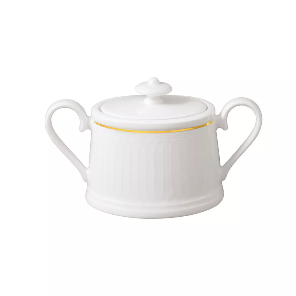 SUGAR BOWL 170 ML, 0930 CHATEAU SEPTFONTAINES, 10-4661 - VILLEROY & BOCH Traditional and modern, the Château Septfontaines collection fascinates with its unique relief, the exciting interplay between the glossy ceramic surface and the matte texture of the decoration, as well as the exquisite 20-carat gold finish. Impress your guests with a special dinner - the Château Septfontaines place setting plate. Discover the perfect union between beautiful relief and a delicate, fine gold thread. Material: Bone Premium porcelain Colour: white Dishwasher safe Do NOT microwave SKU: 1046610930