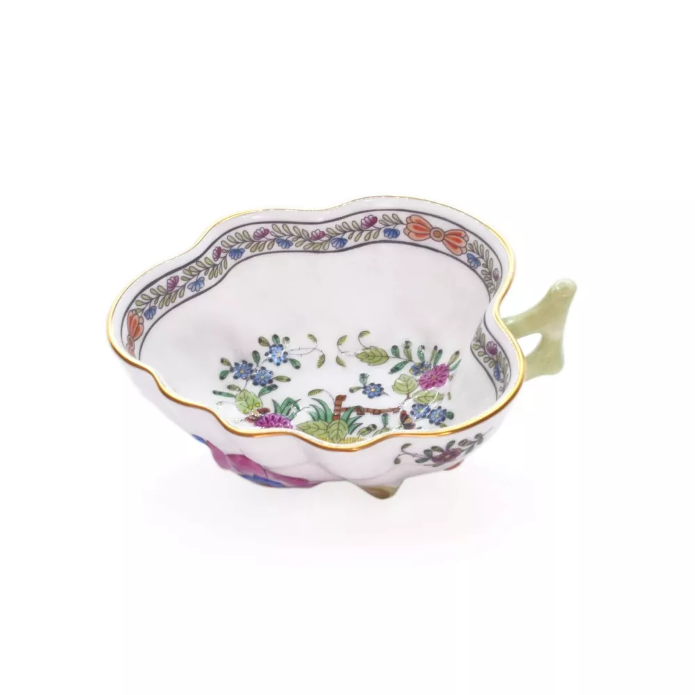 Sugar bowl leaf 10,5 x 8,5 cm h 4 cm Material: fine china with gold decorations Code: 492 Hand wash recommended Never microwave an item with gold or platinum trim.