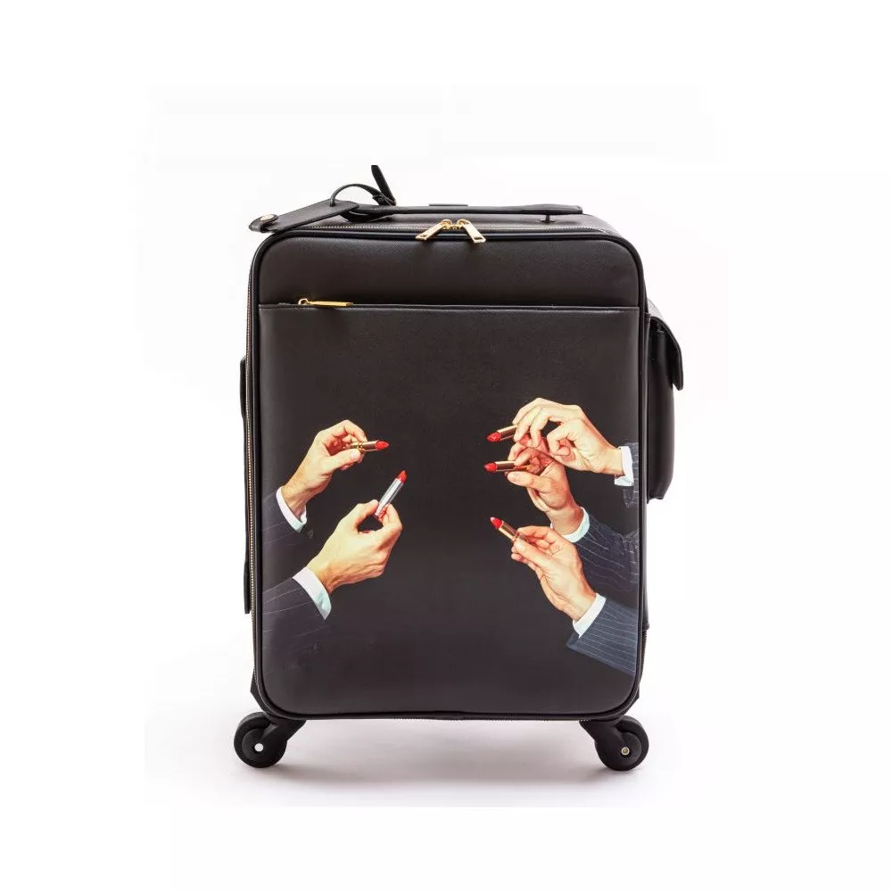 55 cm BLACK SPINNER, "LIPSTICK", TOILETPAPER, 3010 - SELETTI Irreverent images that will certainly won't go unnoticed; TOILETPAPER world is ready to go with you everywhere with the new Travel kit. Exotic islands or relaxing romantic getaways, the only thing you need to do is book your next trip! Trolley Design: Toiletpaper Material: PVC, Polyester Size: cm 40 X 25 h. 55, Cabin Luggage