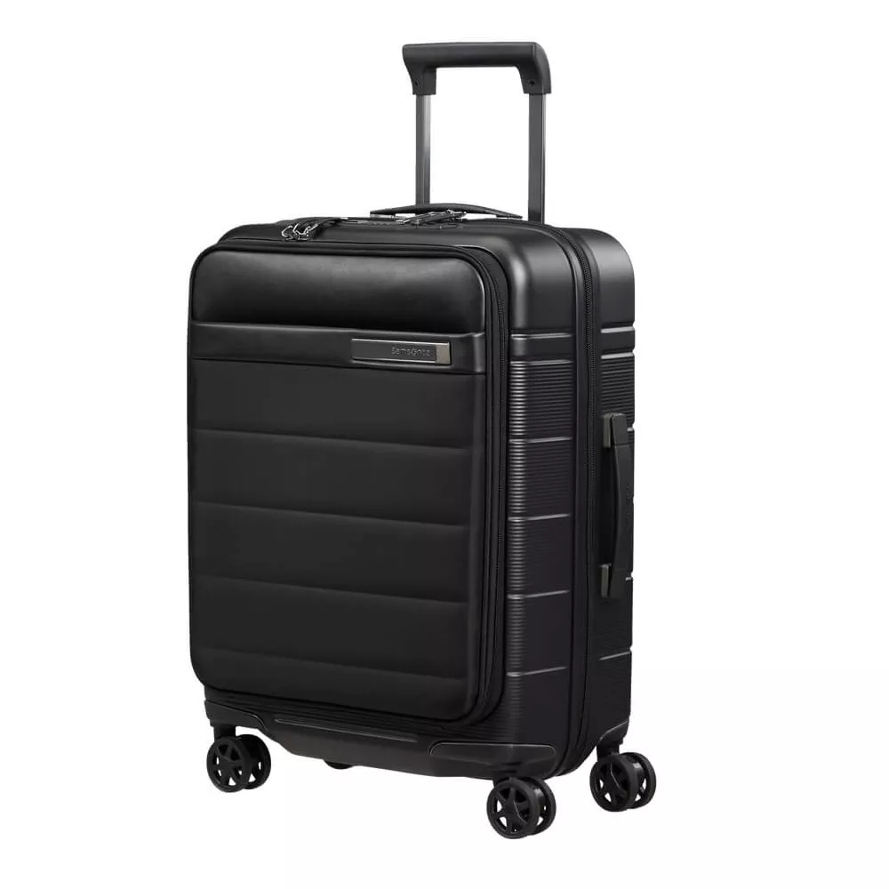 BLACK SPINNER, 55 cm, "NEOPOD", KH3.09.002 - SAMSONITE Travel with ease and in style with Neopod, our cabin-only collection with a contemporary boxy design. Each suitcase is designed to perfection, offering unique and innovative easy access solutions. Made from premium lightweight polycarbonate with a scratch resistant finishing and featuring luxurious gunmetal details, Neopod is your go-to partner for both business and leisure trips. Model: Spinner (4 wheels) Colour: Black Material: Exterior: Lightweight, premium Polycarbonate Water resistant PU and RPET fabric Interior: RPET lining, made from 100% RPET plastic bottles Dimensions: 55 x 40 x 23 cm Expanded dimensions: 55 x 40 x 27 cm Size: Cabin size Volume: 41/48 L Average packing weight: 10 kg Weight: 3.3 kg SKU: 139874-1041