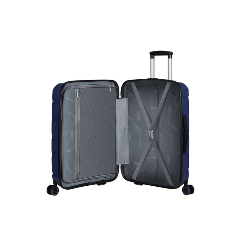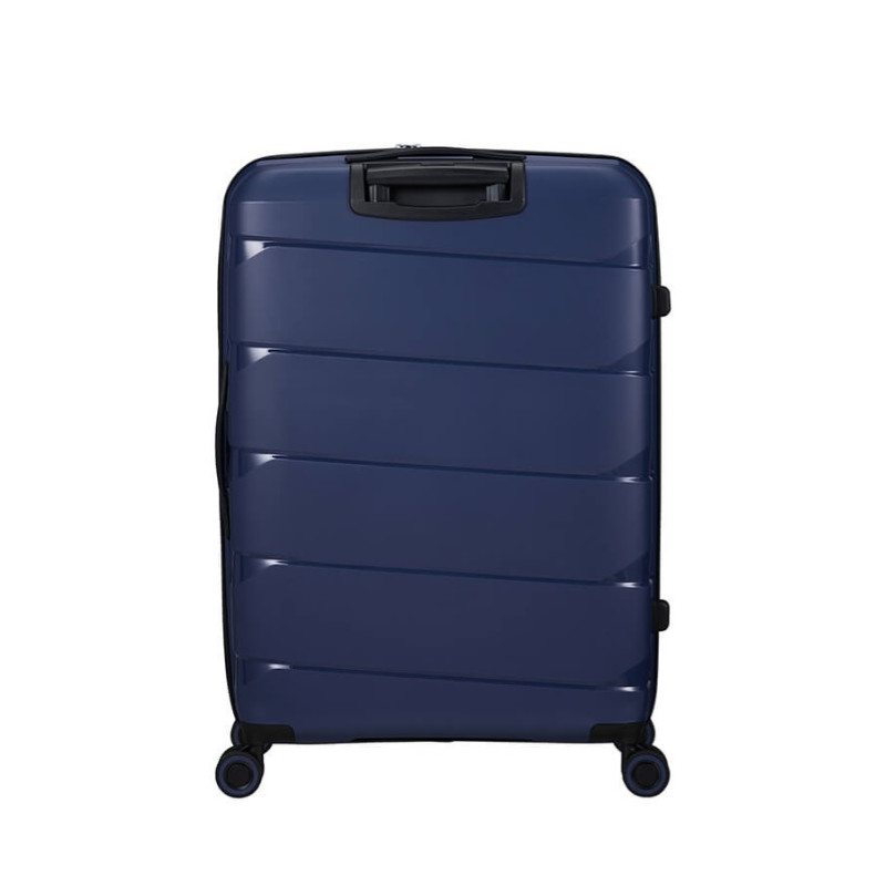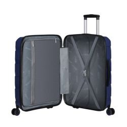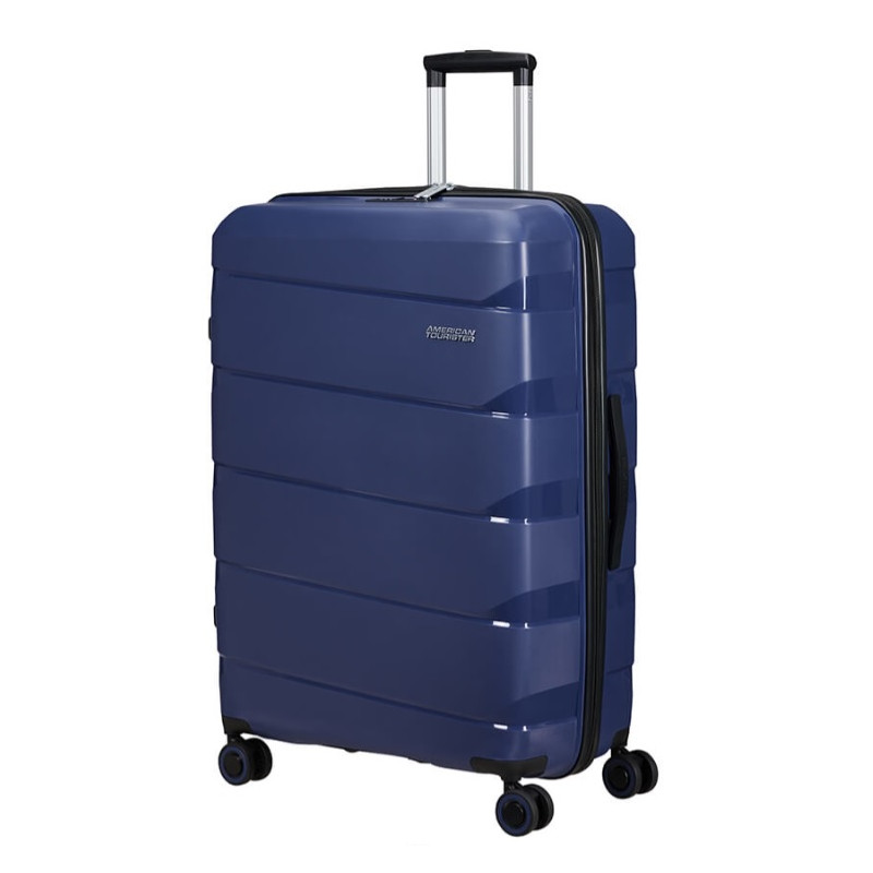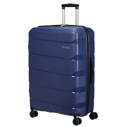 TROLLEY 75 cm BLUE NAVY, "AIR MOVE", MC8041903 - AMERICAN TOURISTER Air Move is the luggage created by American Tourister, the main features of this trolley are a resistent polypropylene shell that allows to face any kind of travel; comfort and resistance is assured by the double wheels and its elegant design will guarantee you will not pass unobserved. Model Spinner (4 wheels) Colour Midnight Navy Material 100% Polypropylene Dimensions 75 x 53 x 28.5 cm (including handles, wheels, bottom glides, side pockets and other external parts) Volume 93 L Weight 4.2 kg SKU 139256-1552