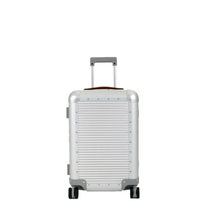 MOONLIGHT SPINNER 53 cm, "BANK" - FABBRICA PELLETTERIE MILANO - 01505315826 Spinner 53 - 100% Aluminum. Suitcase made in Italy with 4 dual wheels silent and sliding, that give great stability. The suitcase has a top handle in soft leather and a non-slip rubber service handle on the side. Additional security is ensured by an integrated TSA lock (ideal for cosmopolitan travelers to the US) and two Maxi butterfly closures. The interiors are made in a soft and padded lining and are removable and easy to clean. The internal organization is characterized by two compartments with a mesh pocket, a shirt holder and two straps in fine Italian leather. Spinner 53 is ideal for 2/3-day journeys. Specifications: Height: 53 cm. / 20,8 inch Width: 36 cm. / 14,1 inch Depth: 24,5 cm. / 9,6 inch Weight: 5 Kg. Volume: 36,6 Lt. Material: Aluminum