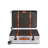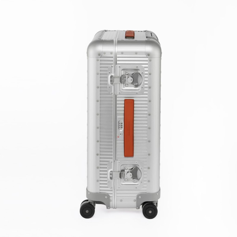 MOONLIGHT SILVER SPINNER 68 cm, "BANK" - FABBRICA PELLETTERIA MILANO - A1506815826 Spinner 68 – 100% Aluminum, 4-wheeled Made in Italy suitcase. The wheels, guarantees great stability and smoothness. The suitcase has a TSA lock incorporated (ideal for travelers to the USA) combined with two maxi butterfly locks ensures safety. The handles are in fine Italian leather. The interior of the suitcase include handcrafted leather belts. The lining is padded and removable. The interior organizer allows for optimum arrangement of contents. Spinner 68 is ideal for 5/6-day journeys. Specifications: height: 68 cm. / 26 inch width: 45 cm. / 17,7 inch depth: 27,5 cm. / 10,6 inch weight: 6.6 kg. volume: 68 lt. material: aluminum
