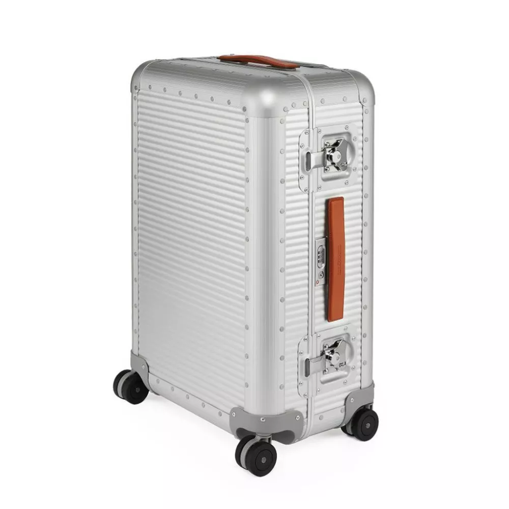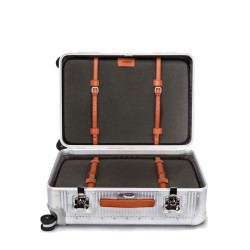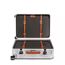 MOONLIGHT SILVER SPINNER 76 cm, "BANK" - FABBRICA PELLETTERIE MILANO - A1507615826 Spinner 68 – 100% Aluminum, 4-wheeled Made in Italy suitcase. The wheels, guarantees great stability and smoothness. The suitcase has a TSA lock incorporated (ideal for travelers to the USA) combined with two maxi butterfly locks ensures safety. The handles are in fine Italian leather. The interior of the suitcase include handcrafted leather belts. The lining is padded and removable. The interior organizer allows for optimum arrangement of contents. Spinner 76 is ideal for 10-11 day journeys. Specifications: height 75 cm. / 29,5 inch width 49 cm. / 19,3 inch depth 28.5 cm. / 11,2 inch weight 7.4 kg. volume 90 lt. material aluminum