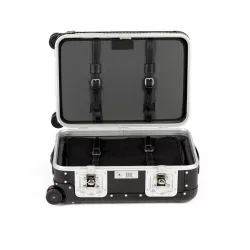 CAVIAR BLACK SPINNER 53 cm, "BANK" - FABBRICA PELLETTERIE MILANO - A1505315915 Spinner 53 - 100% Aluminum. Suitcase made in Italy with 4 dual wheels silent and sliding, that give great stability. The suitcase has a top handle in soft leather and a non-slip rubber service handle on the side. Additional security is ensured by an integrated TSA lock (ideal for cosmopolitan travelers to the US) and two Maxi butterfly closures. The interiors are made in a soft and padded lining and are removable and easy to clean. The internal organization is characterized by two compartments with a mesh pocket, a shirt holder and two straps in fine Italian leather. Specifications: Spinner 53 is ideal for 2/3-day journeys. Height: 53 cm. / 20,8 inch Width: 36 cm. / 14,1 inch Depth: 24,5 cm. / 9,6 inch Weight: 5 Kg. Volume: 36,6 Lt. Material: Aluminum