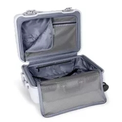 Elegant and secure carry-on luggage. From the double lock closure to the internal organization, the hybrid design elements culminate in a sophisticated travel experience.