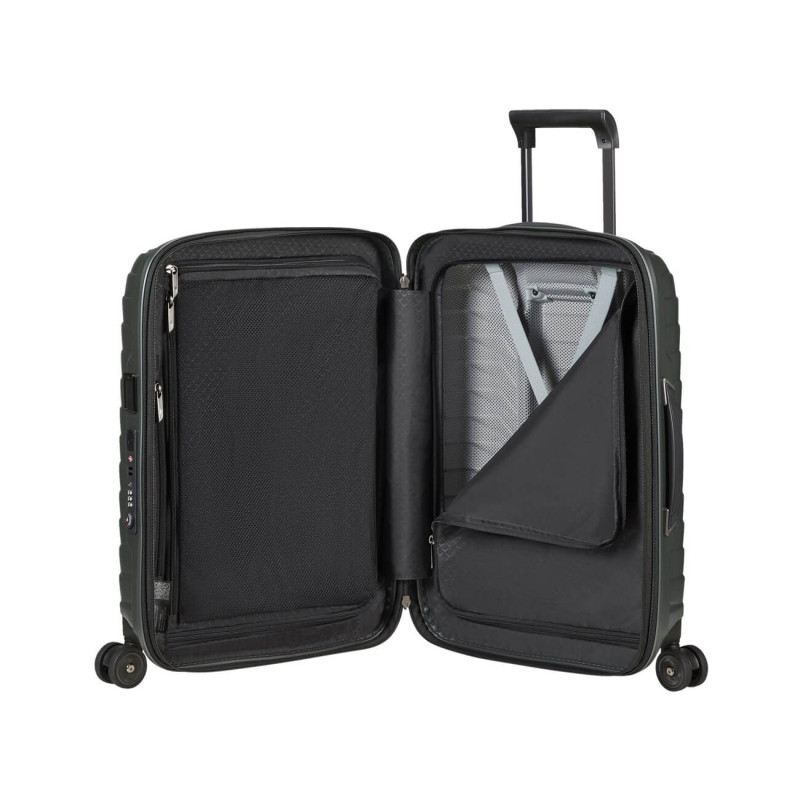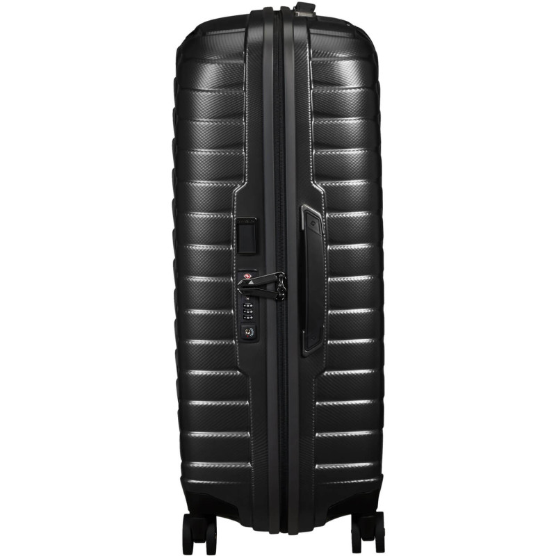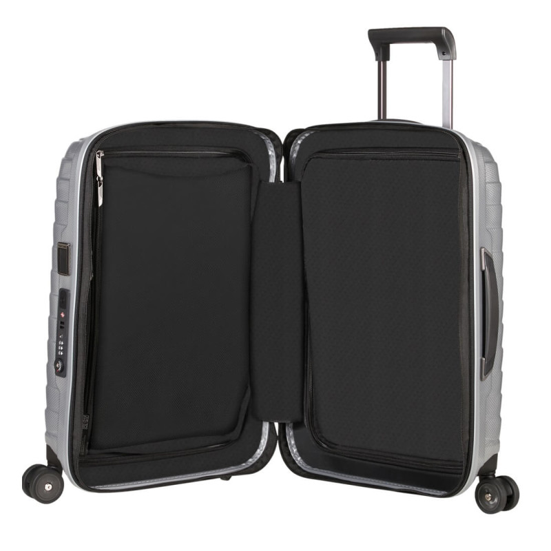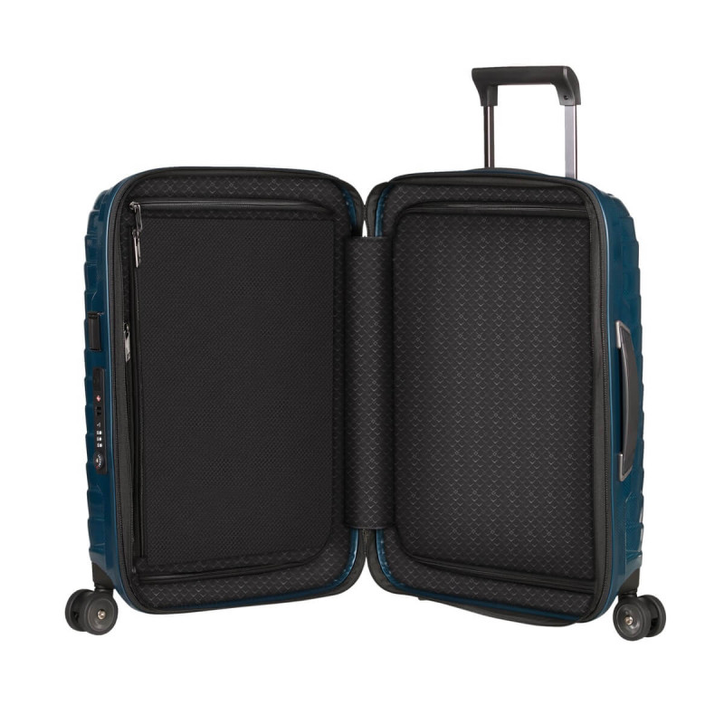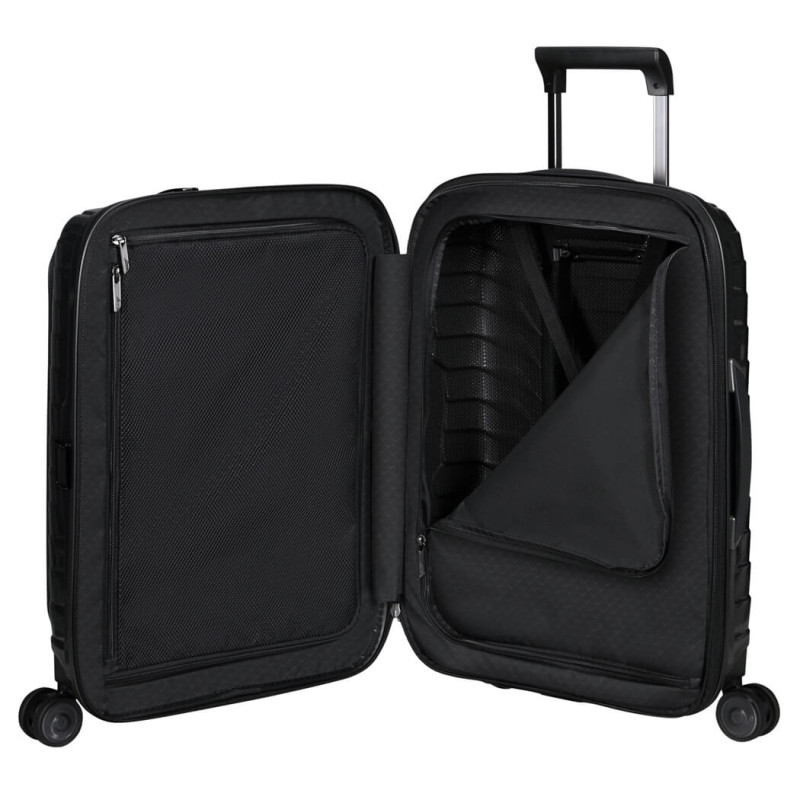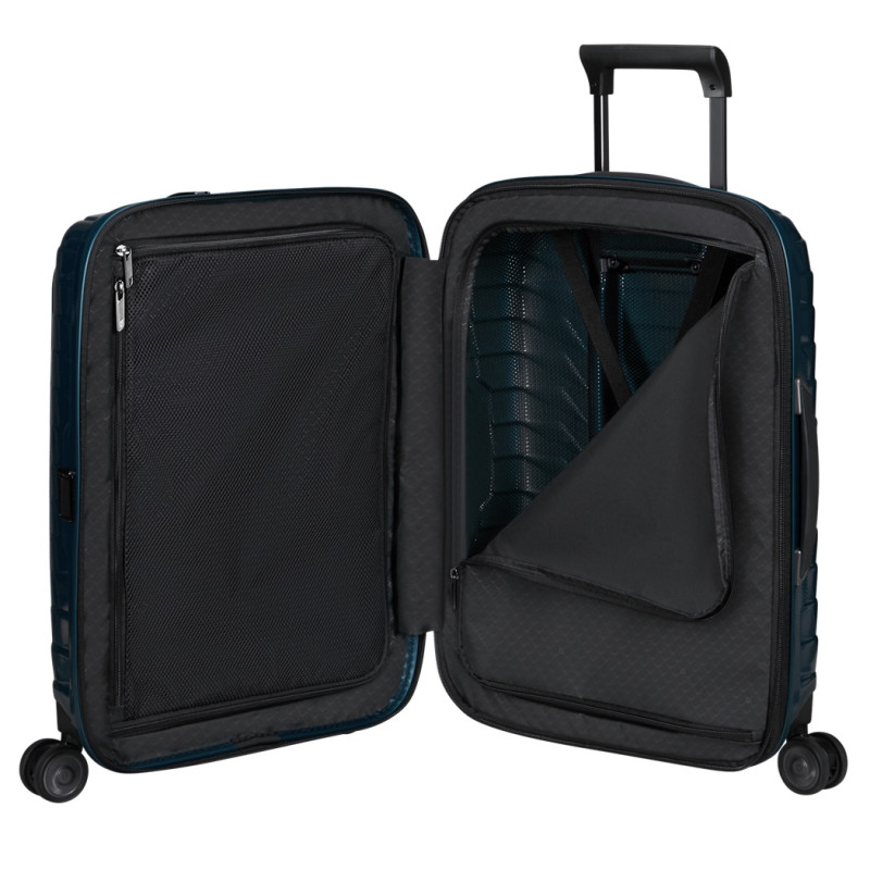 The Proxis spinner suitcase by Samsonite ushers in a new era of travel innovation. Built from Roxkin™, Samsonite’s exclusive multi-layer material, it combines exceptional strength, resilience, and lightness. Its sleek design integrates smart functionality, featuring four smooth wheels, dual dividers, a Powerbank pocket, and an integrated USB port for effortless connectivity. The retractable ID tag ensures security and personalization. Made in Europe, Proxis is crafted for discerning travelers who value durability, sophistication, and modern convenience.