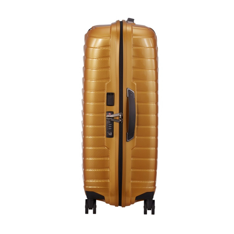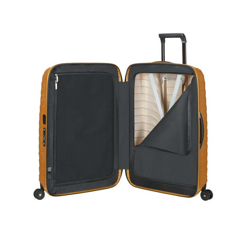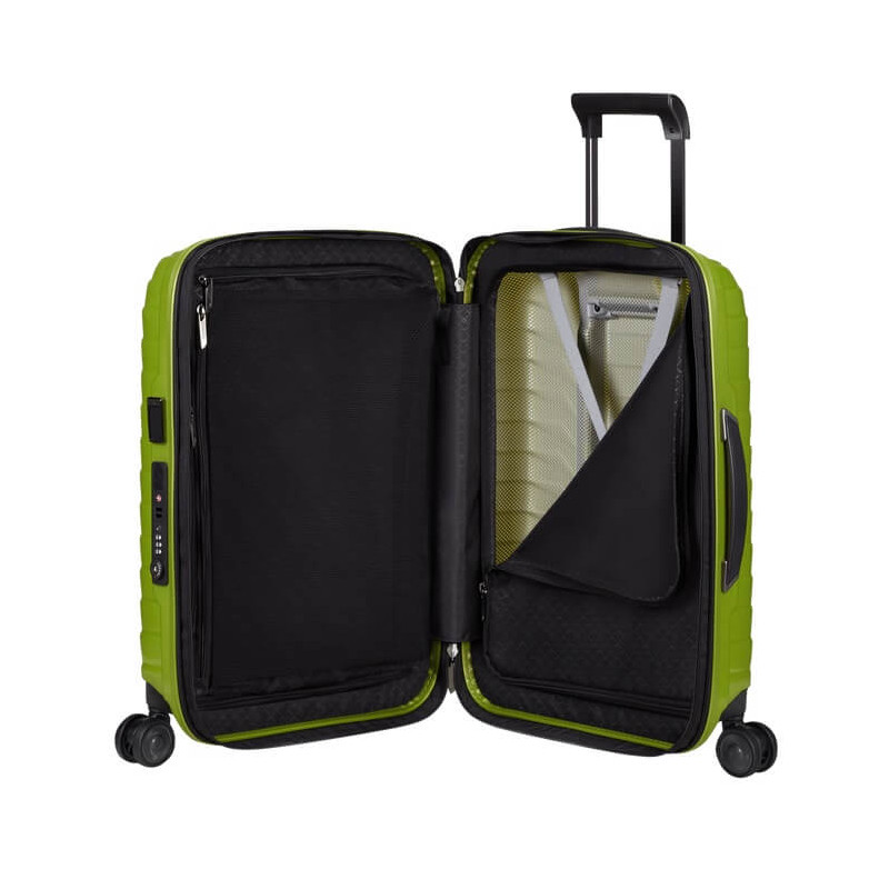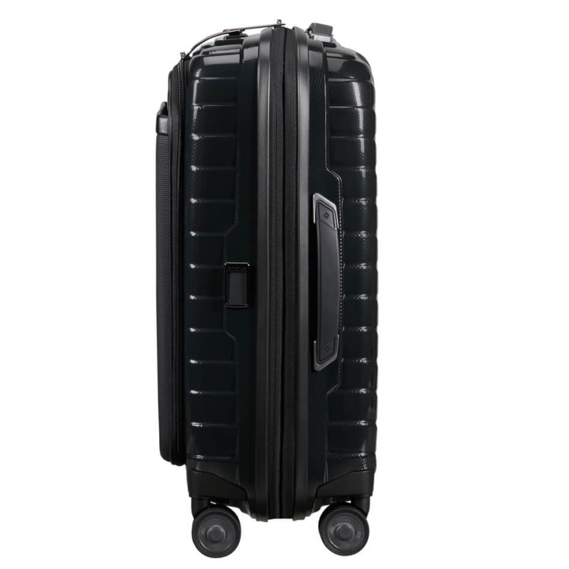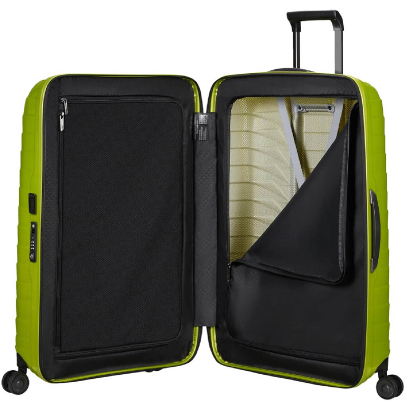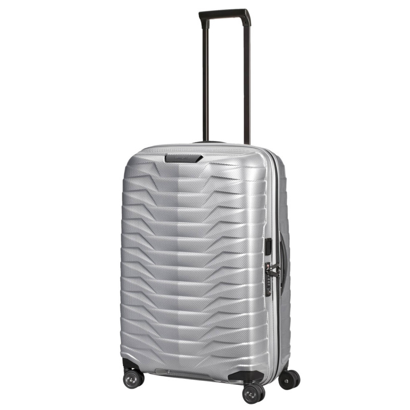 The Proxis spinner suitcase by Samsonite ushers in a new era of travel innovation. Built from Roxkin™, Samsonite’s exclusive multi-layer material, it combines exceptional strength, resilience, and lightness. Its sleek design integrates smart functionality, featuring four smooth wheels, dual dividers, a Powerbank pocket, and an integrated USB port for effortless connectivity. The retractable ID tag ensures security and personalization. Made in Europe, Proxis is crafted for discerning travelers who value durability, sophistication, and modern convenience.