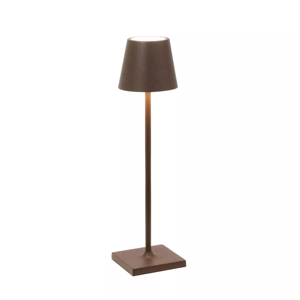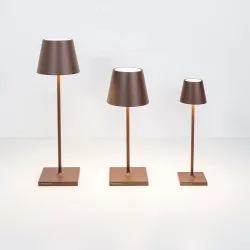 TABLE LAMP POLDINA MICRO - ZAFFERANO SRL Poldina micro is a battery-operated portable and rechargeable table lamp. It is equipped with contact charging base, dimmer touch control and light color temperature selection function: 2200, 2700 & 3000K (dynamic white). In the micro version, the charger is not included. Rechargeable and replaceable lithium battery pack Battery lasts 7-8 hrs at full power Charging time at 1A: 3-4 hrs Die-cast aluminium fixture, polycarbonater diffuser Suitable for outdoor (IP65) Diameter: 7 cm; H 27,5 cm; Base: 7x7 cm