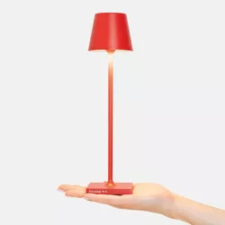 TABLE LAMP POLDINA MICRO - ZAFFERANO SRL Poldina micro is a battery-operated portable and rechargeable table lamp. It is equipped with contact charging base, dimmer touch control and light color temperature selection function: 2200, 2700 & 3000K (dynamic white). In the micro version, the charger is not included. Rechargeable and replaceable lithium battery pack Battery lasts 7-8 hrs at full power Charging time at 1A: 3-4 hrs Die-cast aluminium fixture, polycarbonater diffuser Suitable for outdoor (IP65) Diameter: 7 cm; H 27,5 cm; Base: 7x7 cm