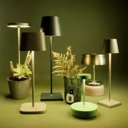 TABLE LAMP POLDINA MICRO - ZAFFERANO SRL Poldina micro is a battery-operated portable and rechargeable table lamp. It is equipped with contact charging base, dimmer touch control and light color temperature selection function: 2200, 2700 & 3000K (dynamic white). In the micro version, the charger is not included. Rechargeable and replaceable lithium battery pack Battery lasts 7-8 hrs at full power Charging time at 1A: 3-4 hrs Die-cast aluminium fixture, polycarbonater diffuser Suitable for outdoor (IP65) Diameter: 7 cm; H 27,5 cm; Base: 7x7 cm